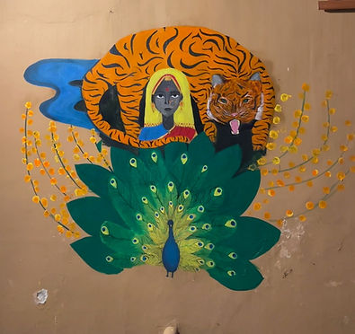 Wall art done at a restaurant in Uttarakhand, through this I've depicted the inter-relation between the women, plants and animals of Uttarakhand. It is a social iniative, to support women artisans of Uttarakhand and to showcase it's beauty.